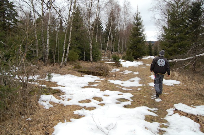 ![]() Zufahrt zur Grube Kupferberg / Mĕdĕnec. Im Hintergrund der Schornstein des Heizhauses. Foto: Denise Oehme & Mario Poller |