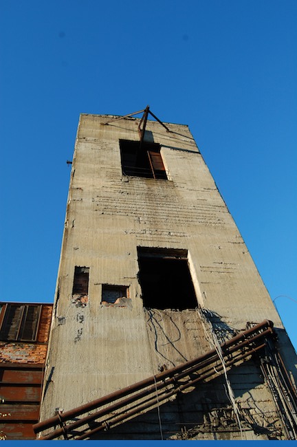 große Gebäude der Aufbereitung ist einsturzgefährdet, zumindest der