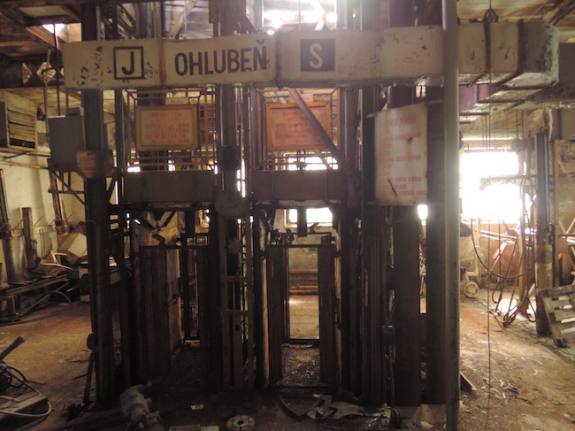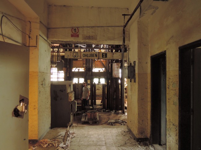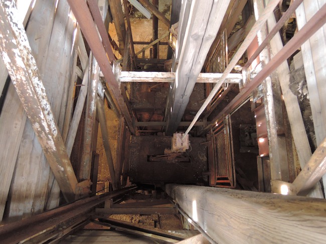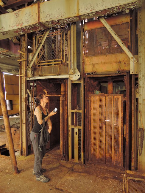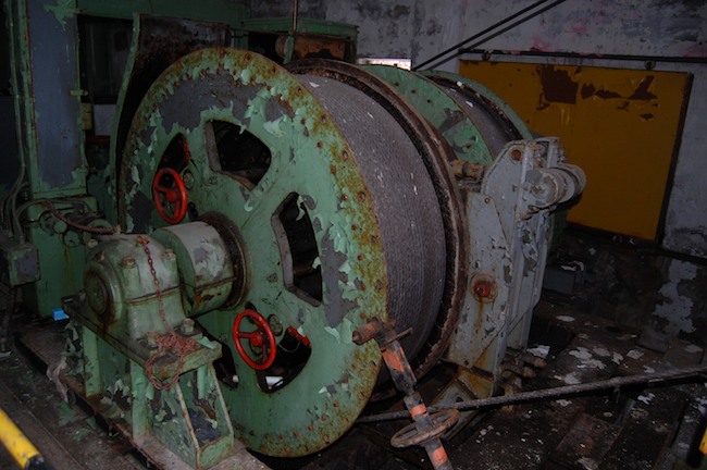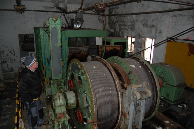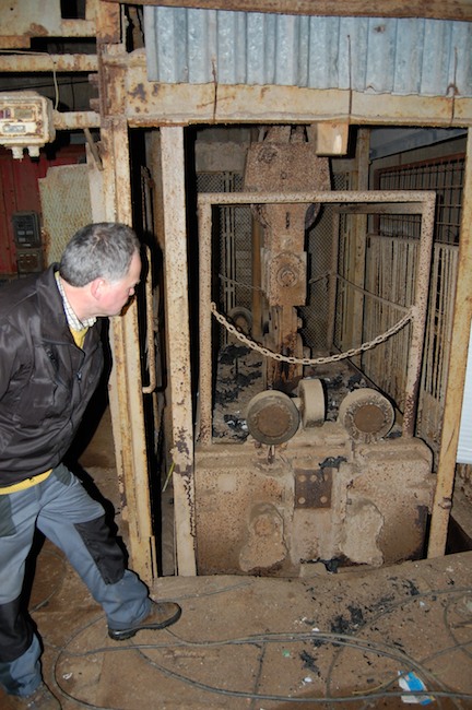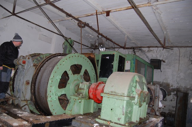 ![]() Vom Flur der Kaue gelangte man zum zweitrümigen Fahrschacht. Hier erfolgten Personen- wie auch Materialfahrten. Foto: Denise Oehme & Mario Poller