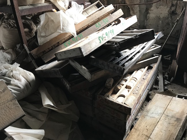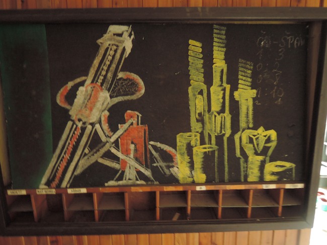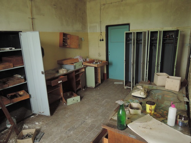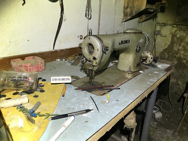 ![]() Hier wurden die Arbeitssachen in Ordnung gehalten. Angefangene Arbeiten blieben einfach liegen. Wozu auch fertig machen, ist eh niemand mehr da... Foto: Martin Planitzer & Diana Lichtenthal |