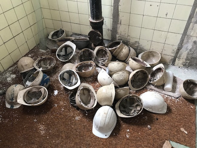 ![]() Hier zieht sich schon lange niemand mehr um und duschen kann auch niemand mehr, die Heizpatronen der beiden Speicher sind nämlich auch schon „verschwunden“. |