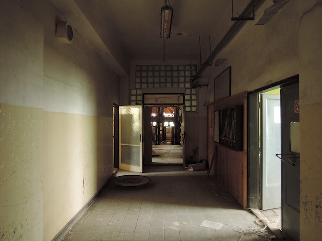 ![]() Am Ende des Kauenflurs liegt der Schacht. Hier bin ich das erste Mal 1994 entlang gelaufen und anschließend eingefahren. Foto: Denise Oehme & Mario Poller |