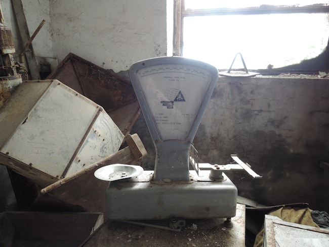 ![]() Die Werksbahn oder was davon noch übrig ist: Auf dieser Waage wurden die Waggons mit den ein- und ausgehenden Waren und Produkten gewogen. |