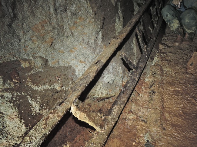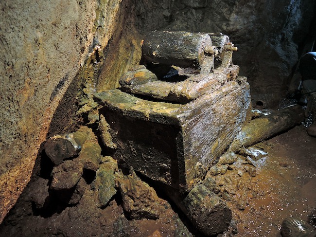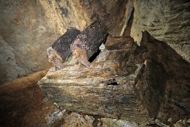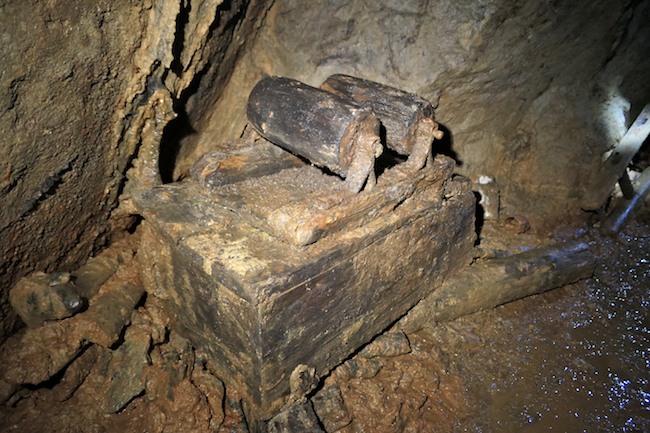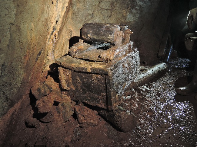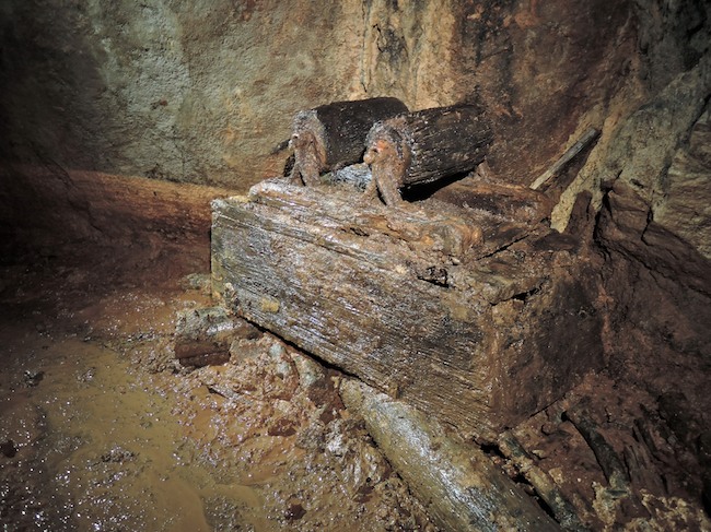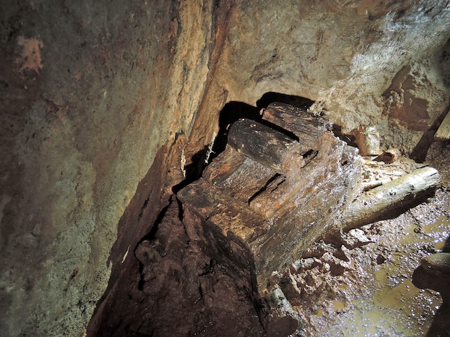 weniger funktionaler Ausbau eines Schachtes. Das Auffinden einer Karre oder