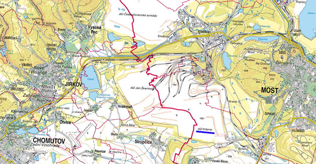 spätere Tagbau lom Vršany entstand aus einem Grubenfeld auf dem Gebiet der