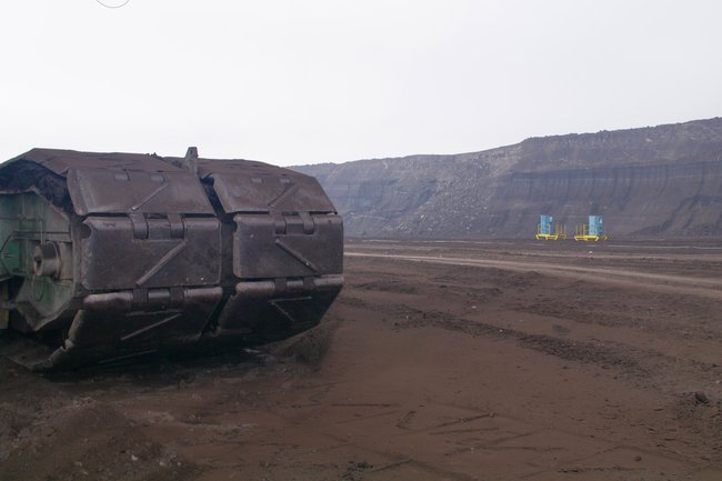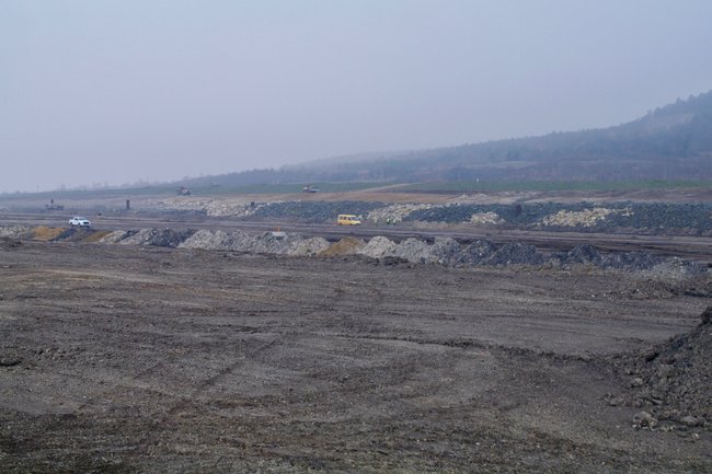 ![]() Hier wird noch das Deckgebirge entfernt. Die Kohle liegt tiefer. Foto: R. Gumprecht