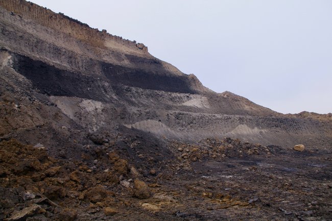 ![]() Anstehende Braunkohle. Hier das obere Flöz … Foto: R. Gumprecht