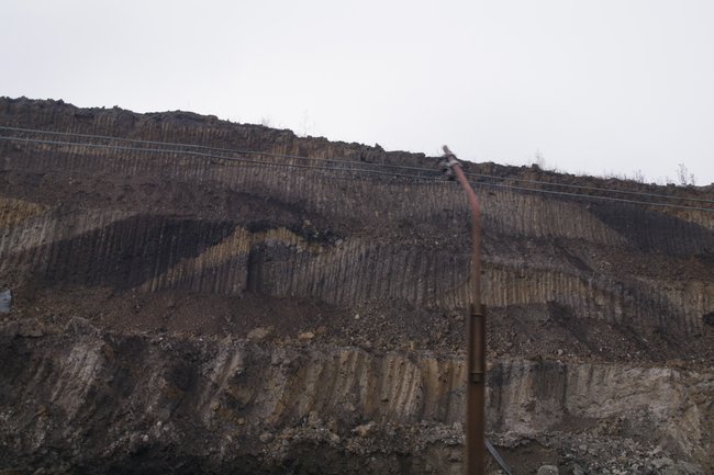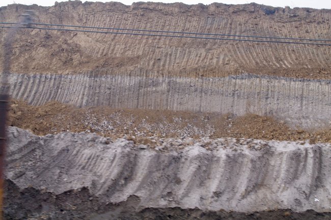![]() Dieser Anschnitt der Tagebauwand zeigt sich vollkommen ohne Kohle … Foto: R. Gumprecht