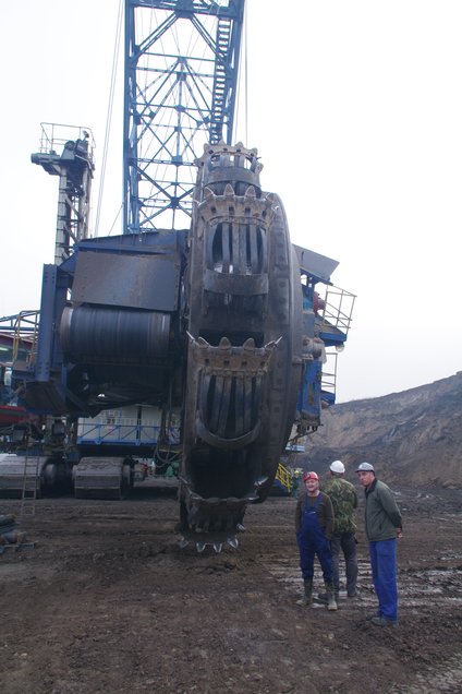 ![]() Auch von Nahem ist der Schaufelradbagger ein gewaltiger Koloss ... Foto: R. Gumprecht