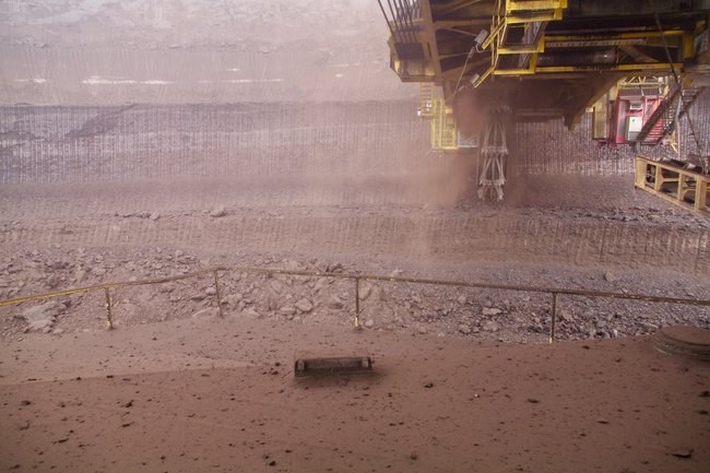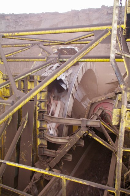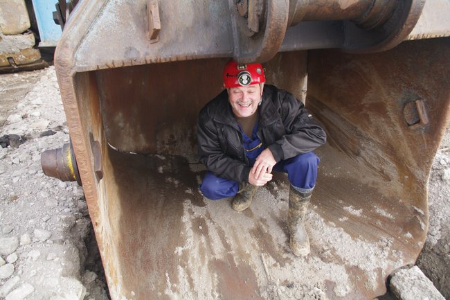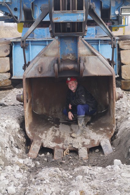 ![]() Na ja - drunter stehen sollte man eigentlich nicht. Auch im Tagebau ist Helm angebracht. Foto: R. Gumprecht
