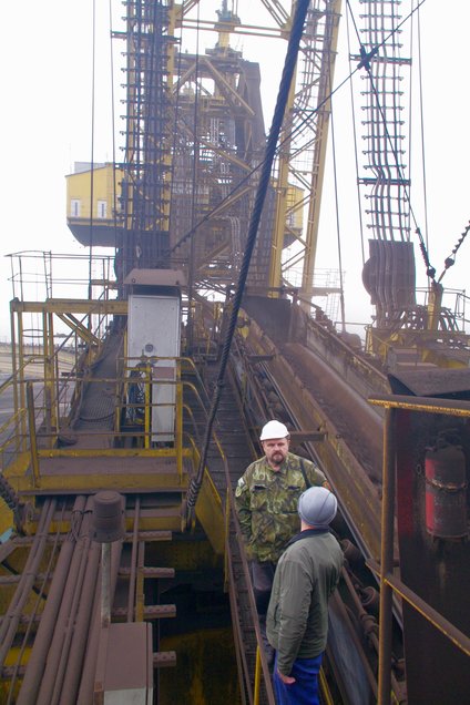 ![]() In Deutschland undenkbar, als Besucher auf einem solchem Schaufelradbagger zu steigen, um sich alles auch in Betrieb anschauen … Foto: R. Gumprecht