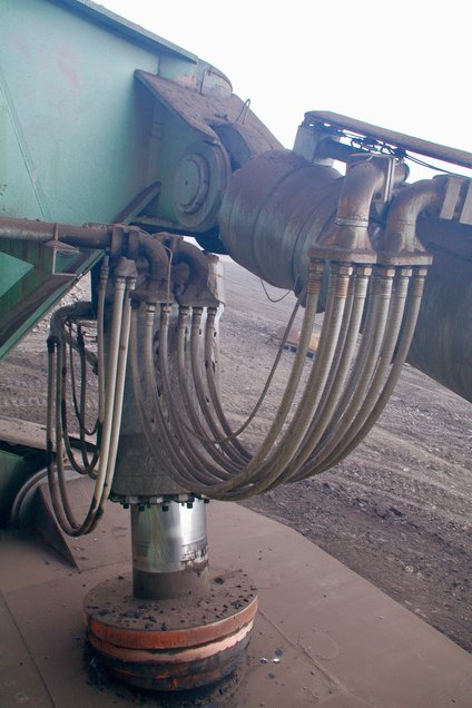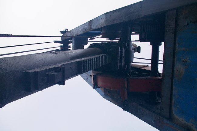 ![]() Der Ausleger hat keine Hydraulik, sondern wird mit einer Zahnstange gehoben... Foto: R. Gumprecht