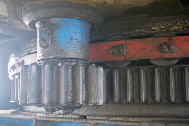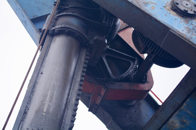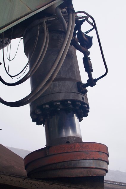 ![]() Ein Hydraulikstempel des Schreitfahrwerkes. Foto: R. Gumprecht
