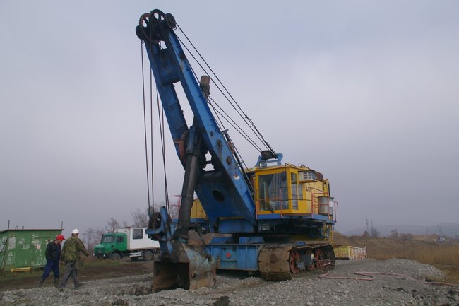 Ja auch einen alten Bagger-Oldtimer haben wir gesehen. Natürlich wieder eine UNEX-Konstruktion. Jedoch konnten wir bis heute den genauen Typ nicht ermitteln. Es wird sich wohl um die Baureihe E-303 oder ähnlich handeln. Das Gerät erfuhr auch schon einige Revisionen wie an dem Fahrerhaus gut zu sehen … sieht ja aus wie eine umgebaute Telefonzelle!