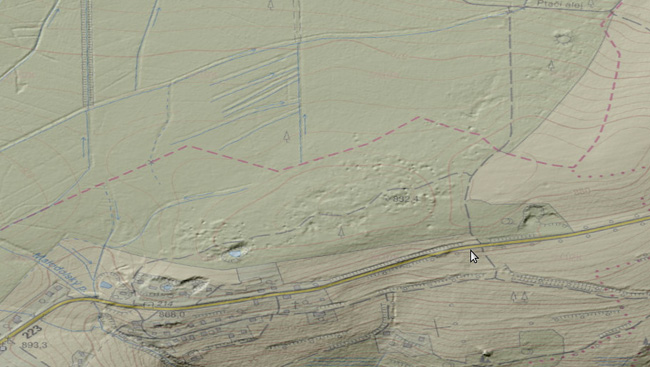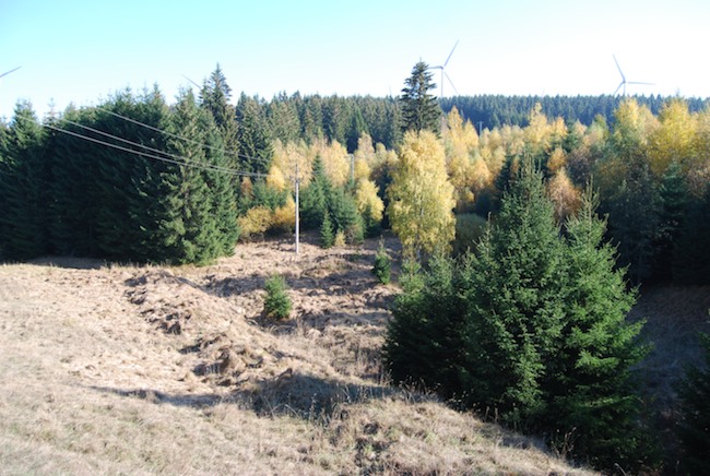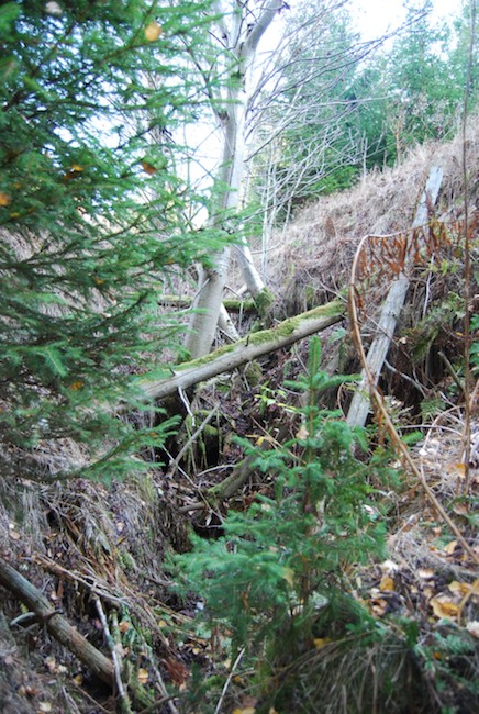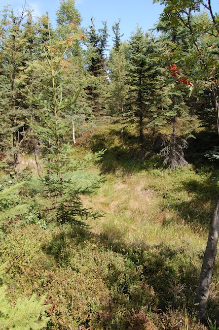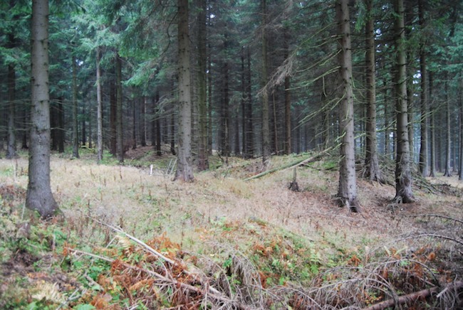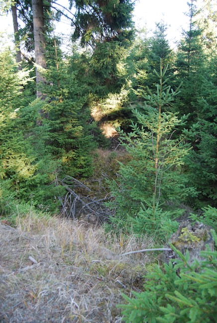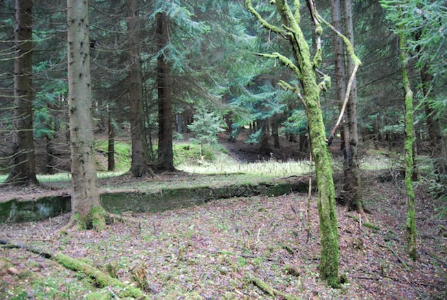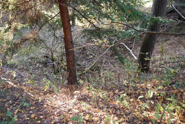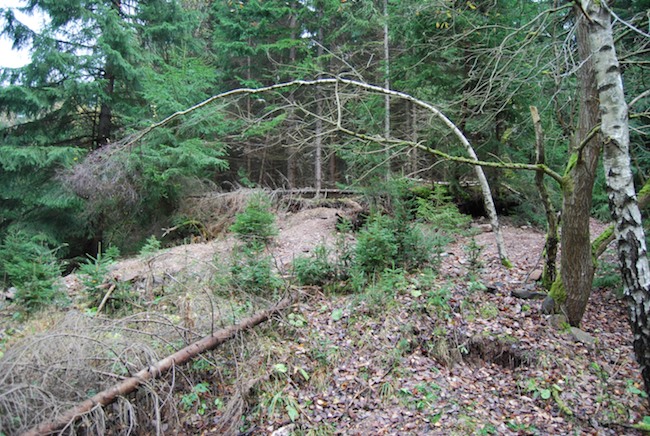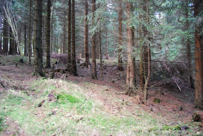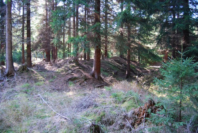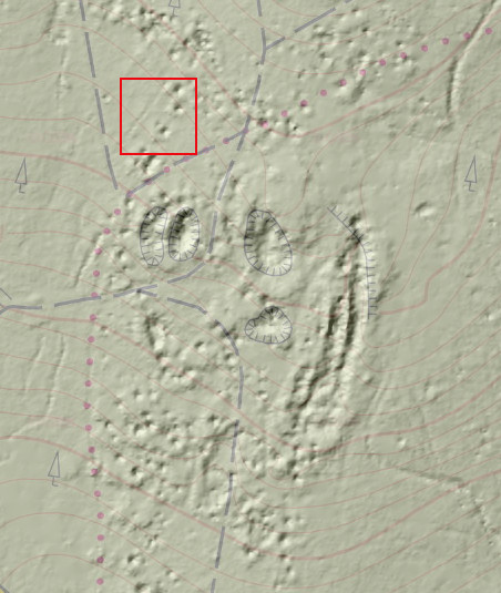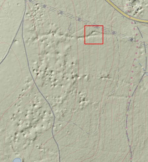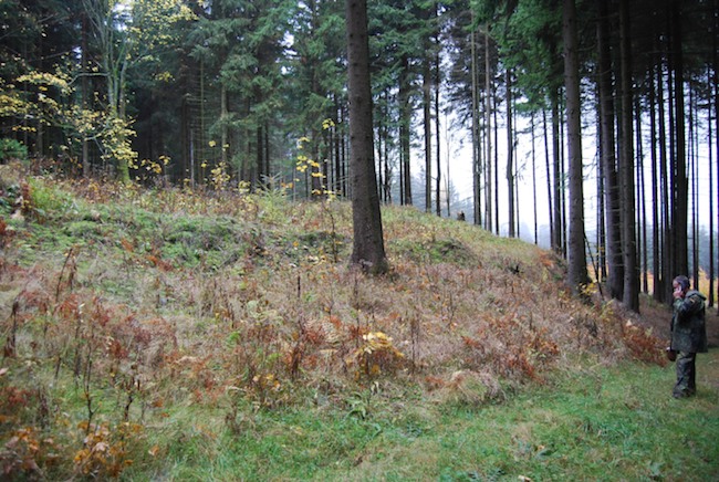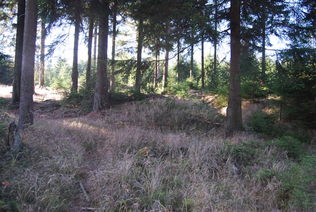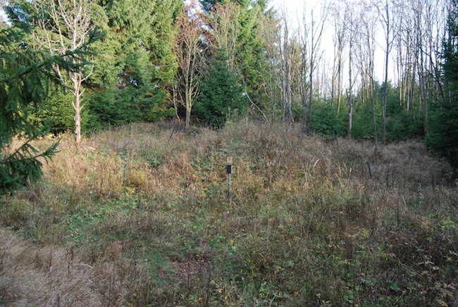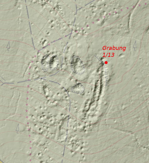 Ausgrabung im mittleren Bereich der Siedlung Diese Ausgrabung liegt etwas am Rand der Siedlung an einer Schonung. Der Befund zeigt heute noch die Standorte von zwei Häusern. Derzeit liegen nicht mehr Informationen vor. Mittlerweile ist diese Ausgrabungsstätte eingezäunt.