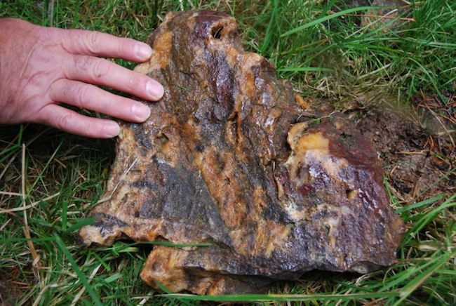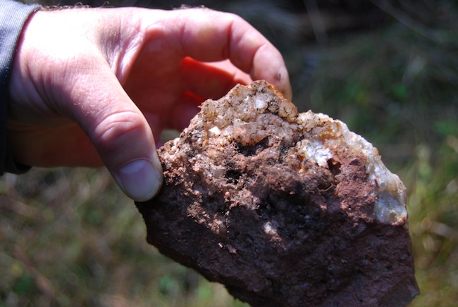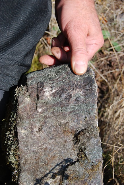 das Nebengestein ebenfalls mit Erz imprägniert. Hier lagen die Gehalte bei 16
