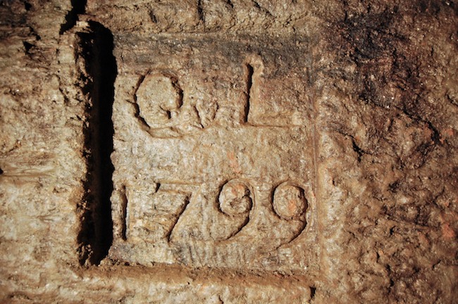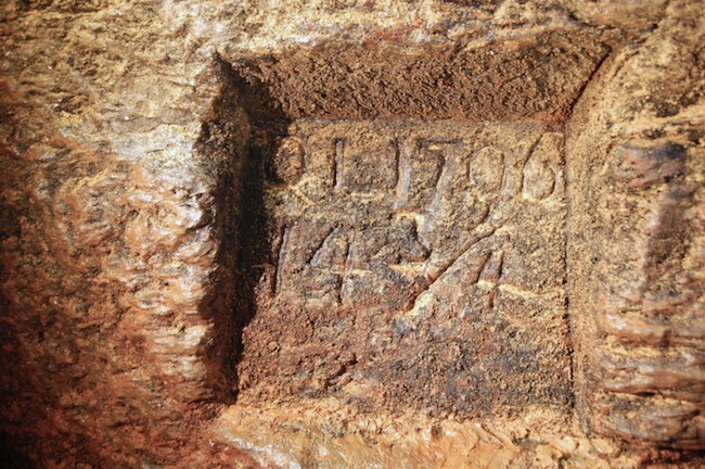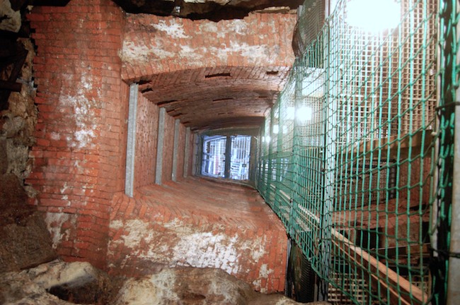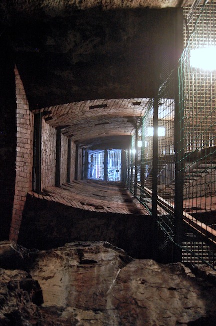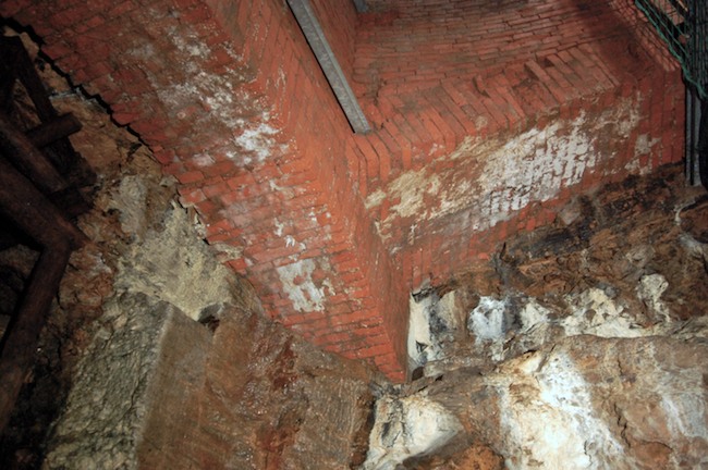 Das Auflager der mächtigen Gewölbebögen der oblongen Schachtmauerung im