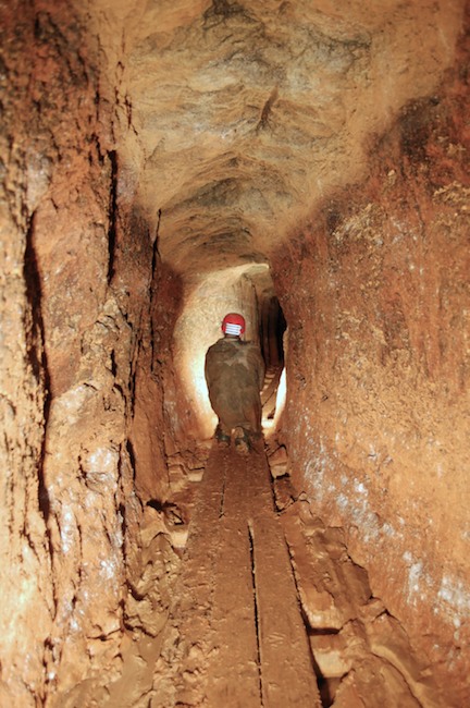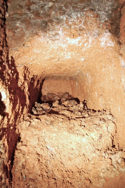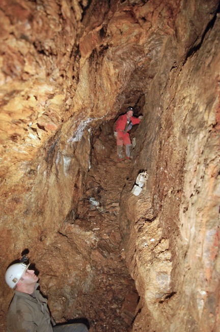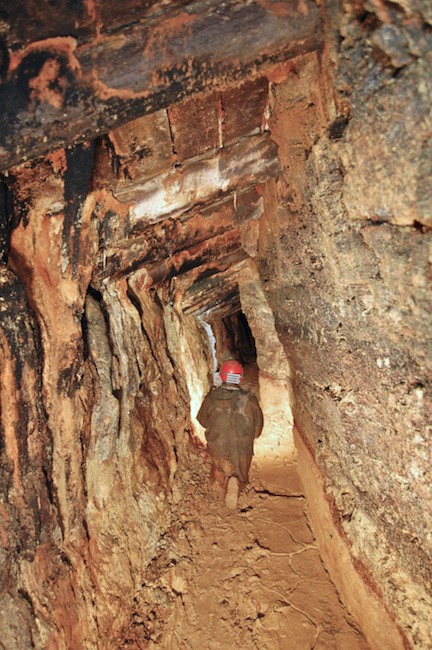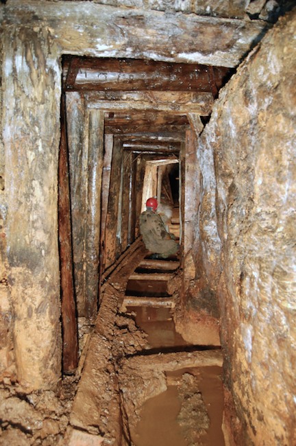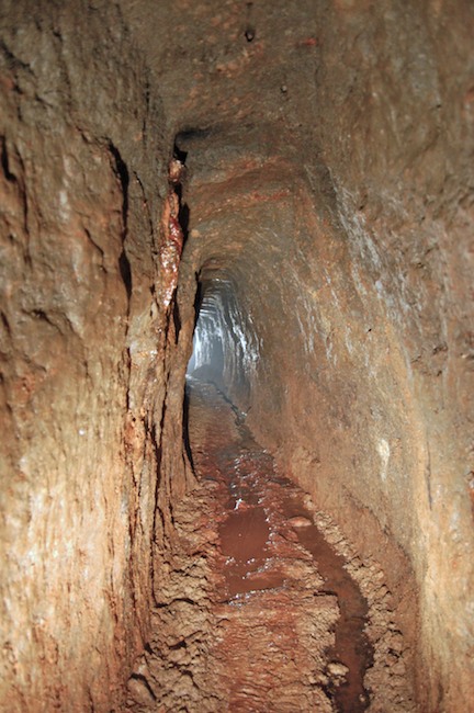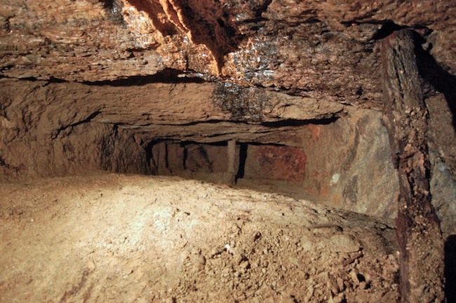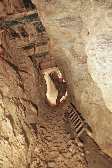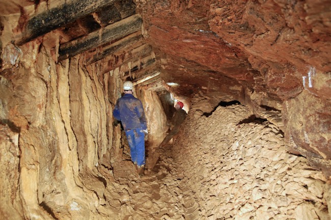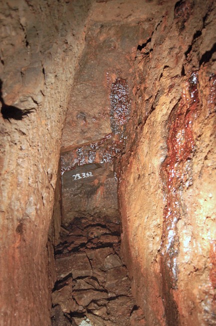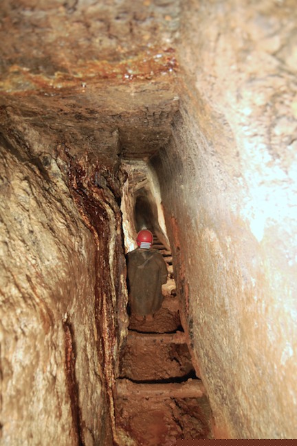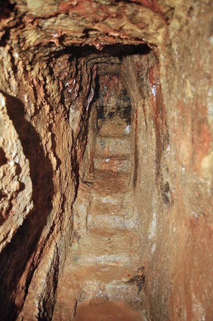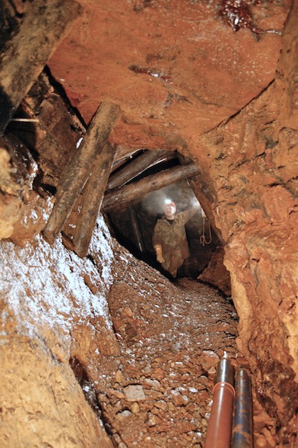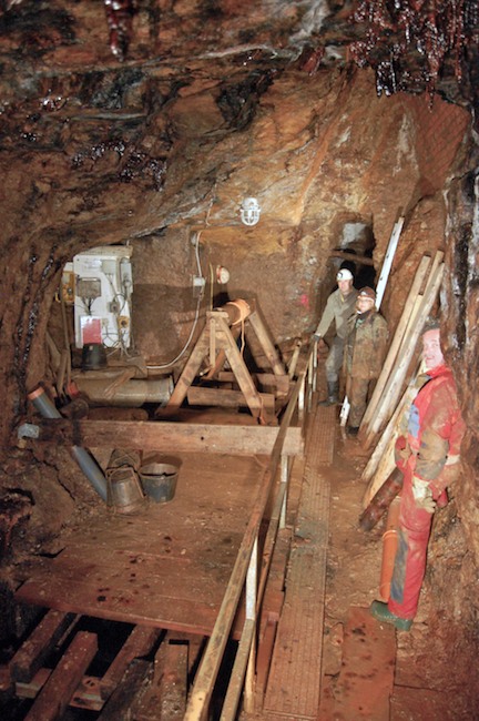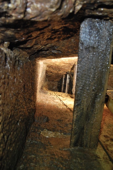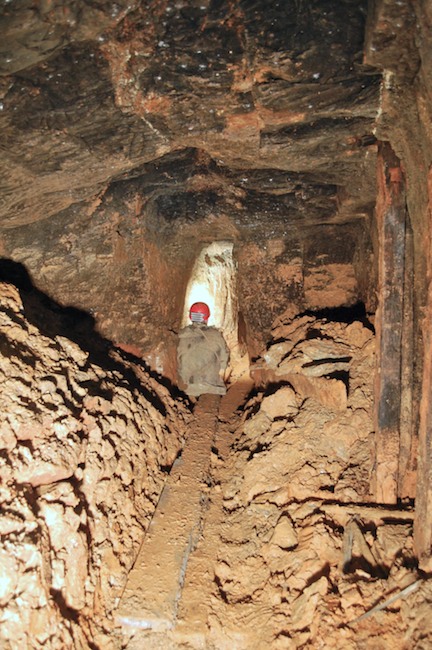 Das Streckenprofil unter dem Abbau ist mittels Schlägel und Eisen vorgetrieben.