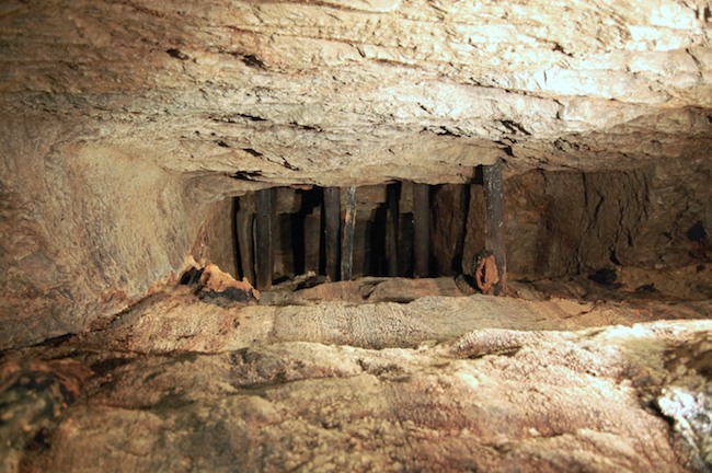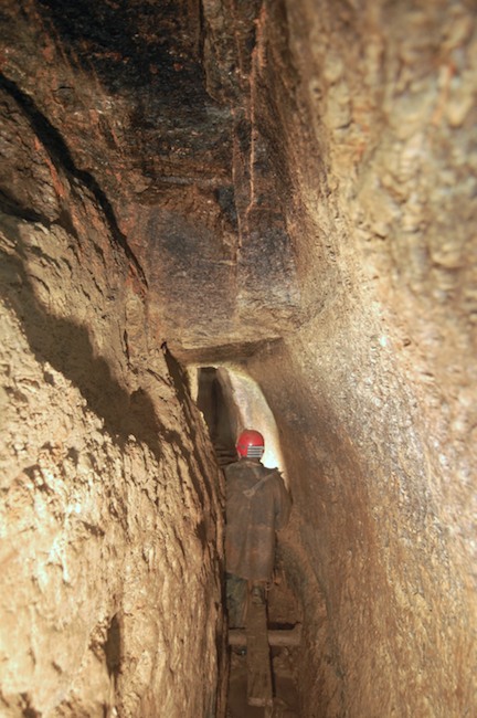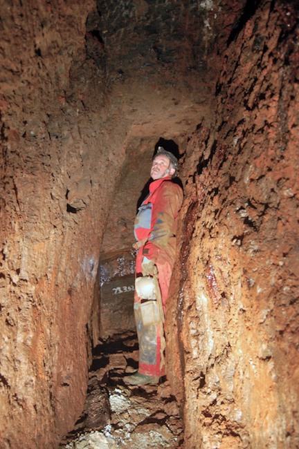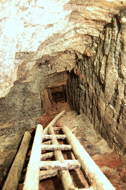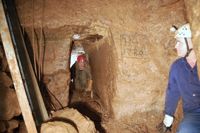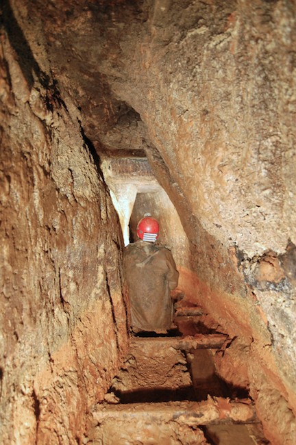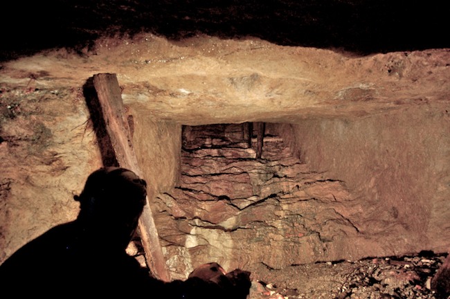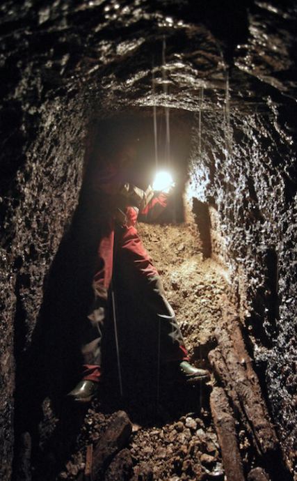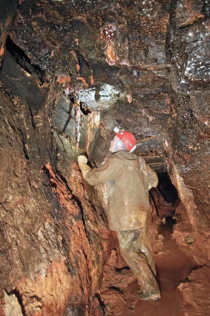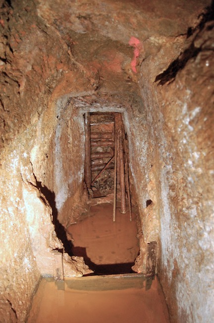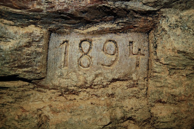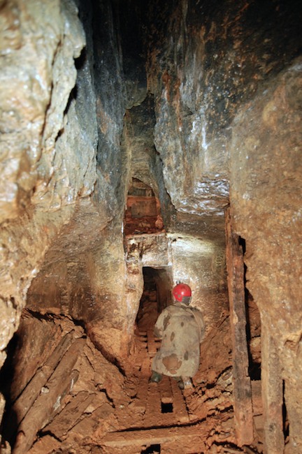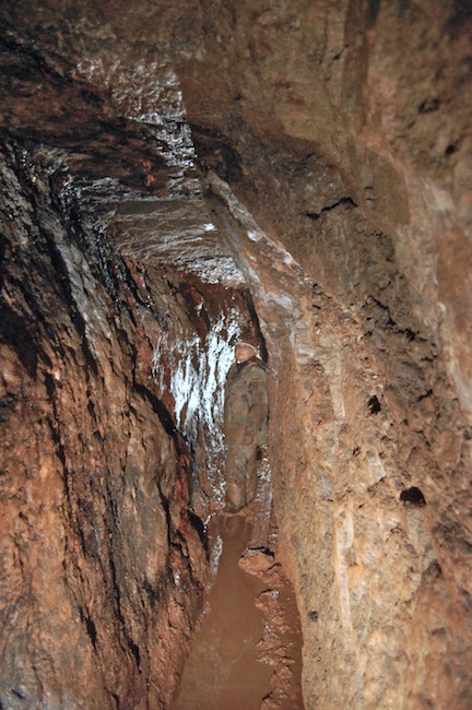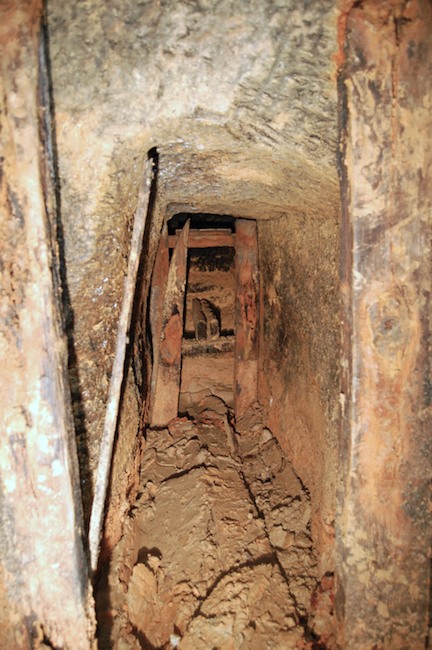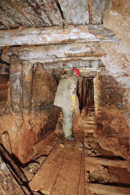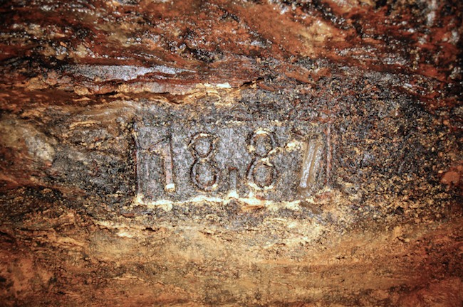 Das Streckenprofil unter dem Abbau ist mittels Schlägel und Eisen vorgetrieben.