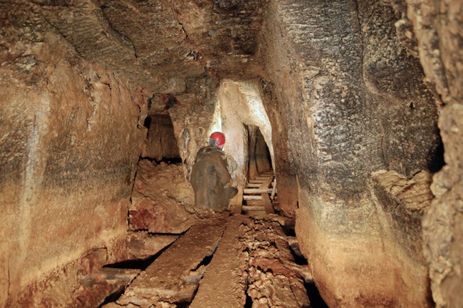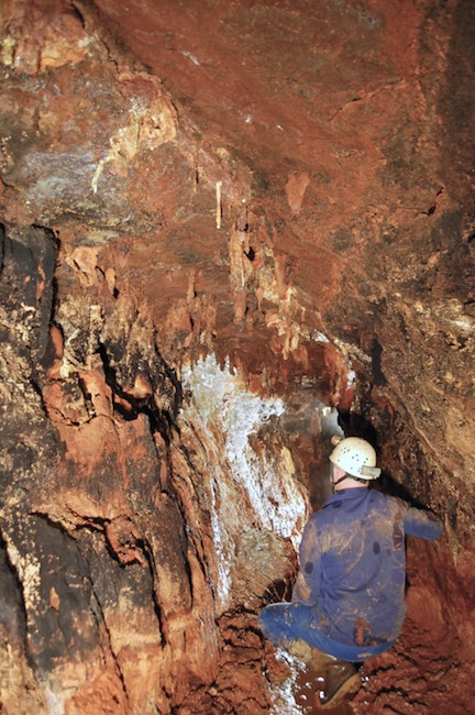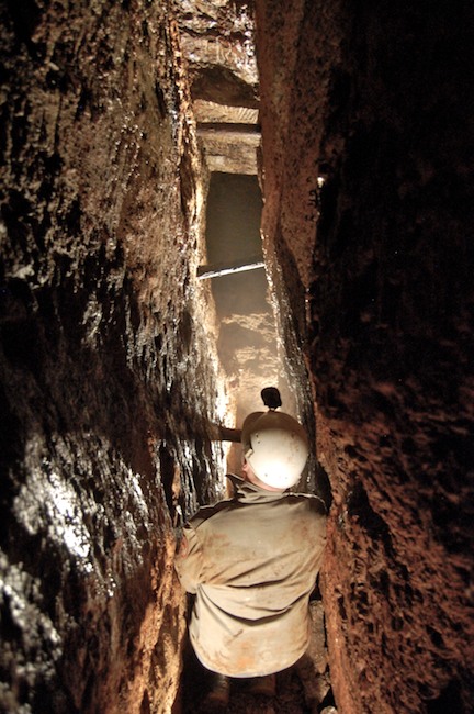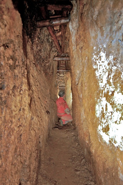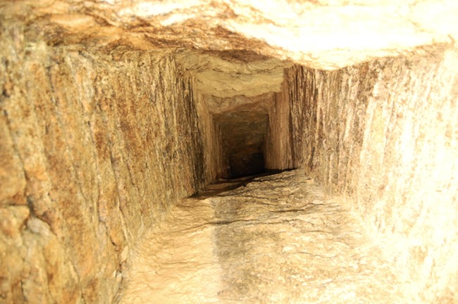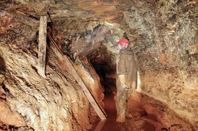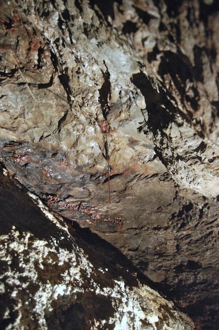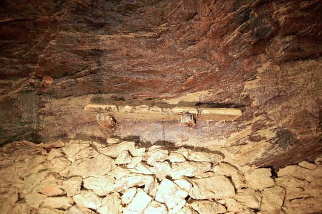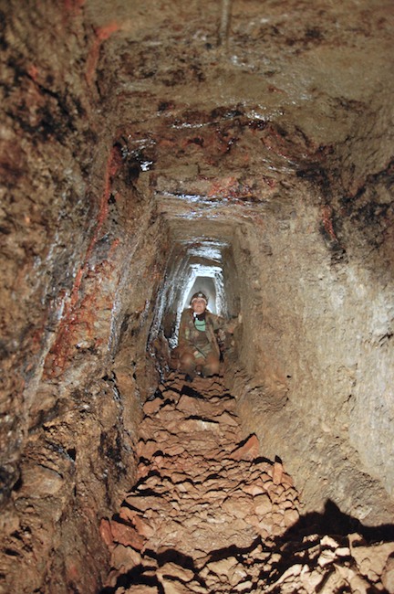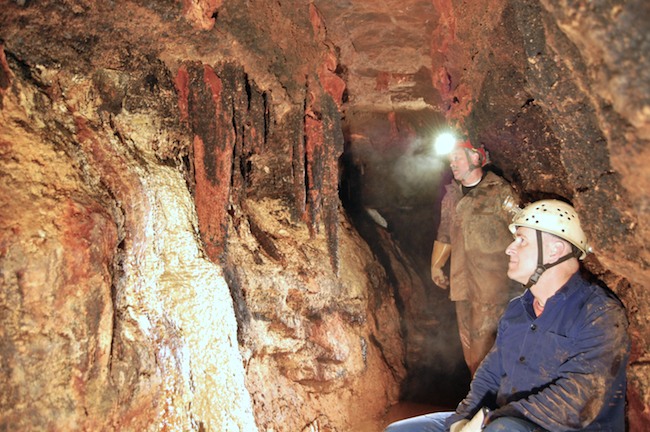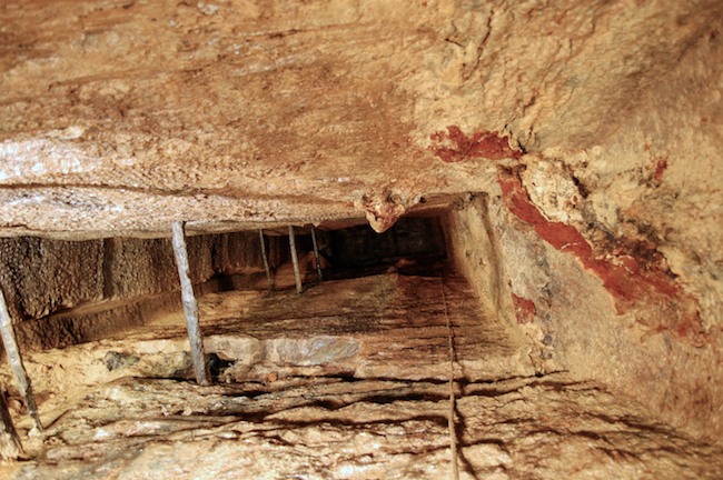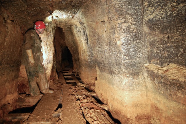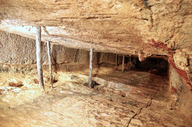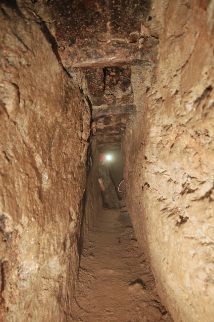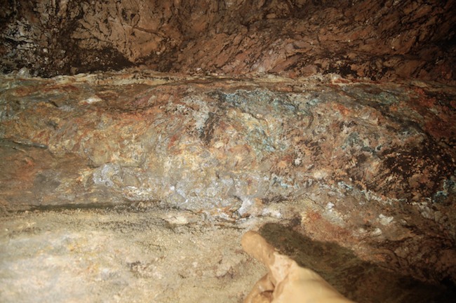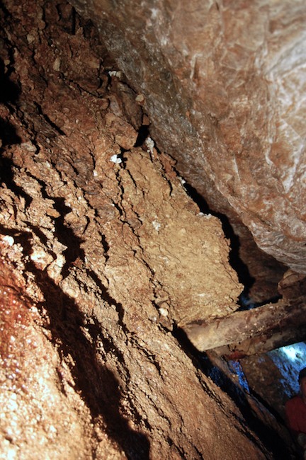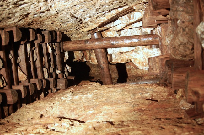 Das Streckenprofil unter dem Abbau ist mittels Schlägel und Eisen vorgetrieben.