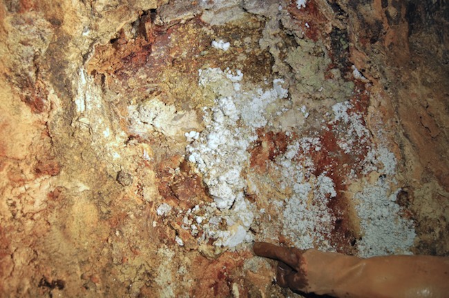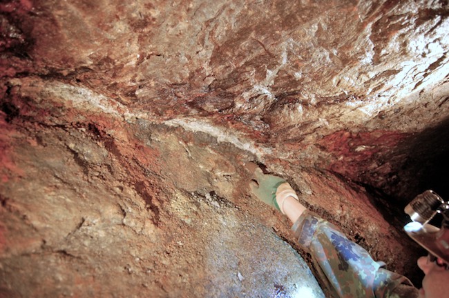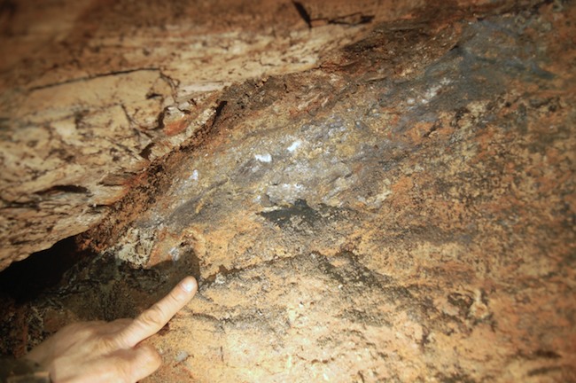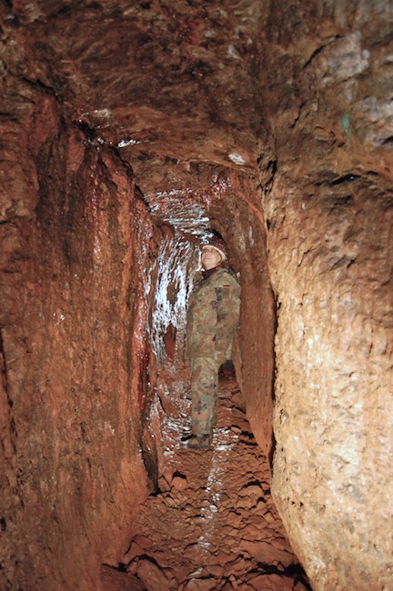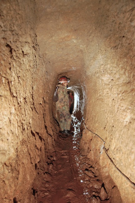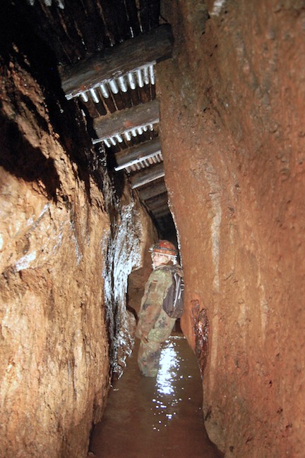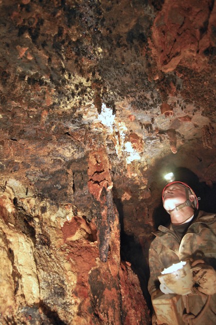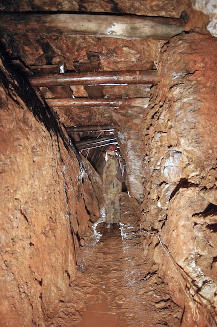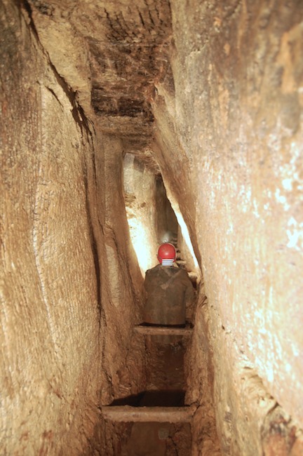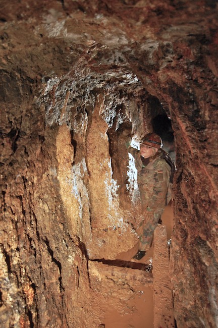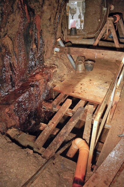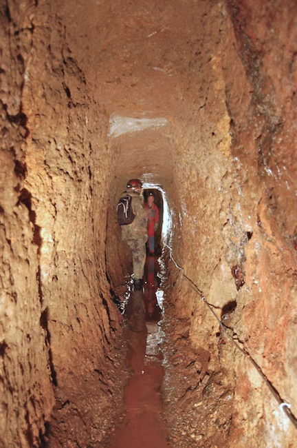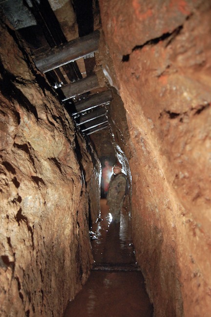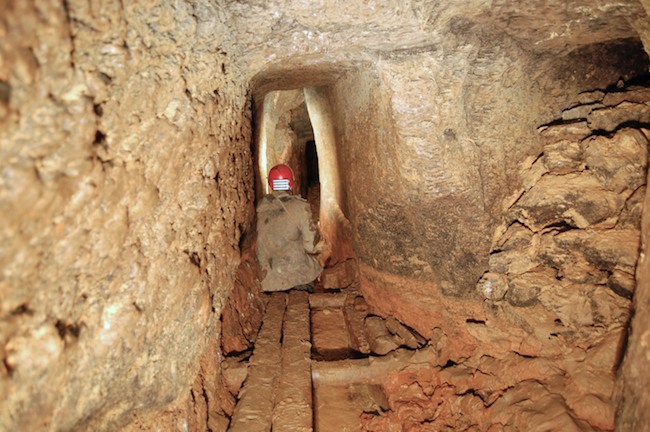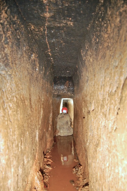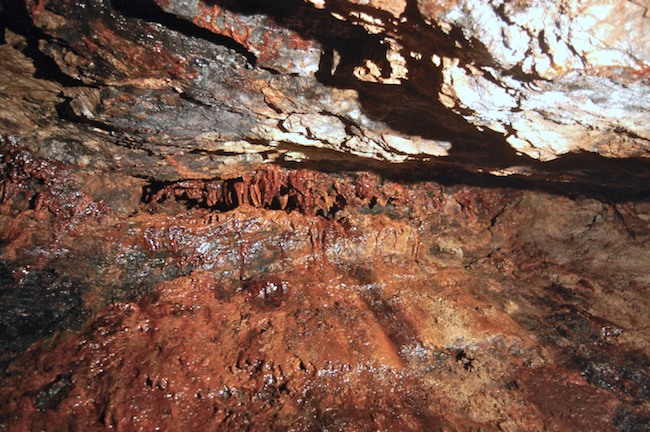 Das Streckenprofil unter dem Abbau ist mittels Schlägel und Eisen vorgetrieben.