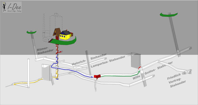eingebaut und breitgezogen. Die verbliebenen Dimensionen des Stollnprofils