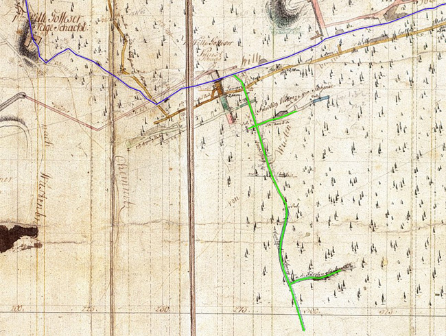 Den Fahrweg zum Römer Stehenden und auf selbigem entlang haben wir im Riß