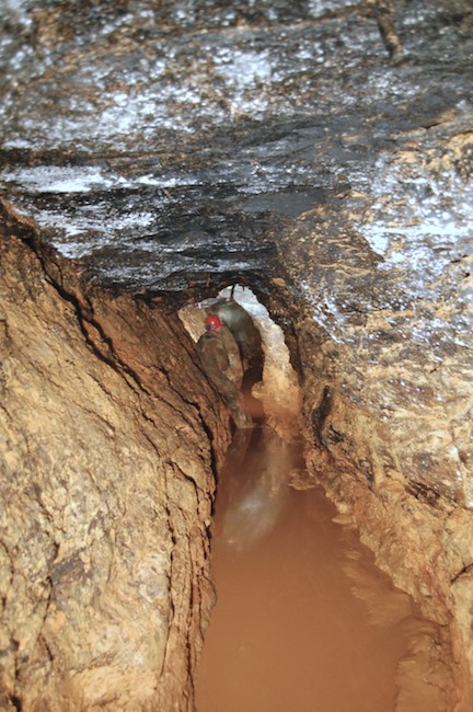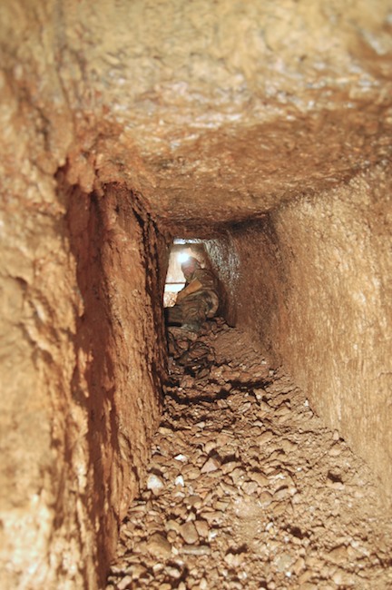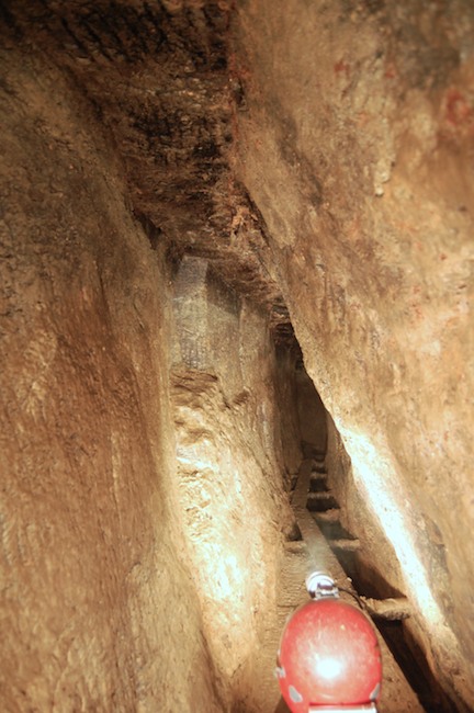 Auf der Sohle des schon engen Profils wurde hier wohl noch Abraum