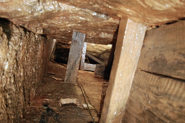 Brettern und Lehm abgedichtet, damit die Wetter in das Gesenk