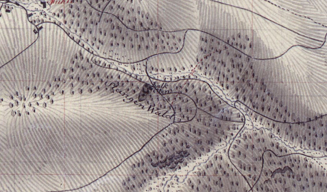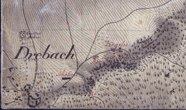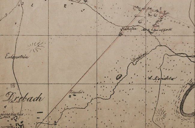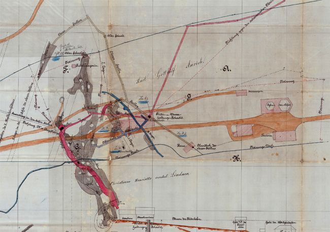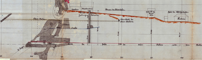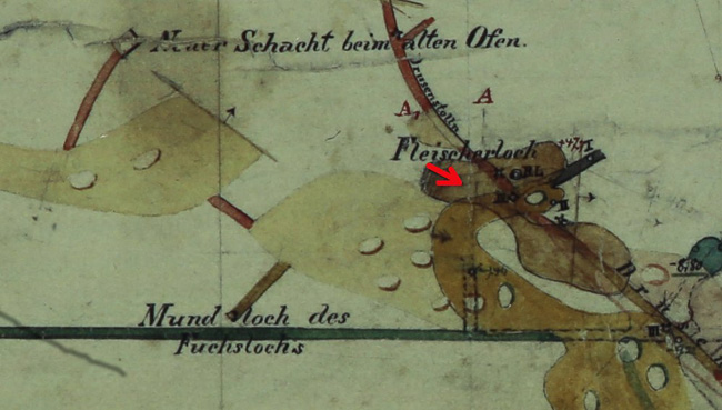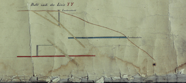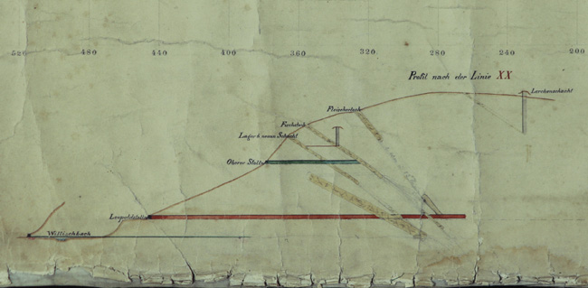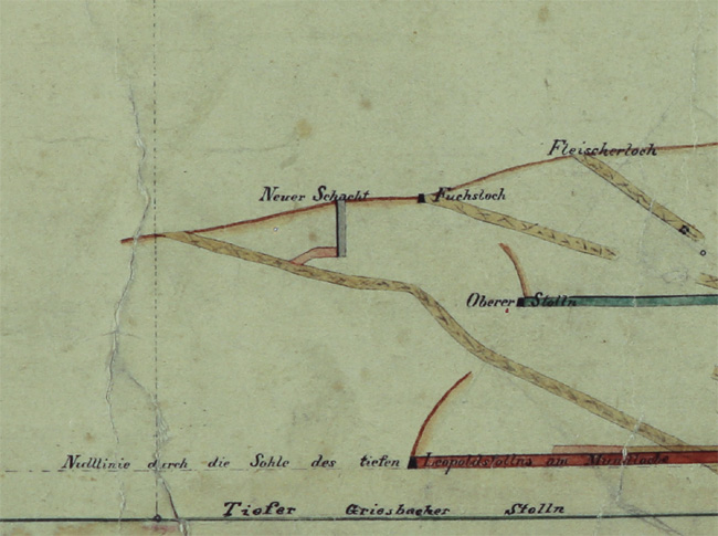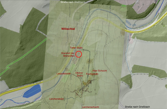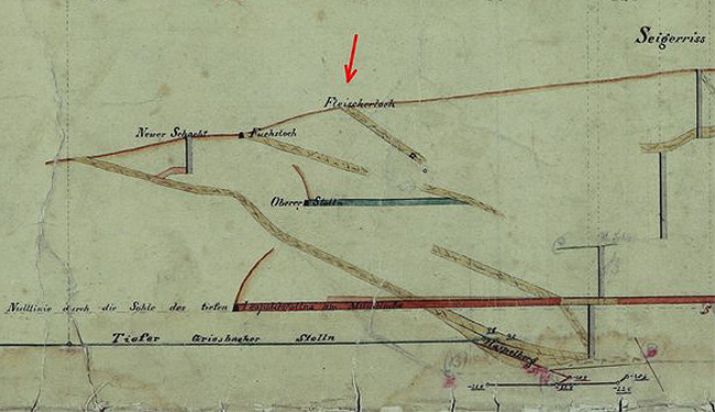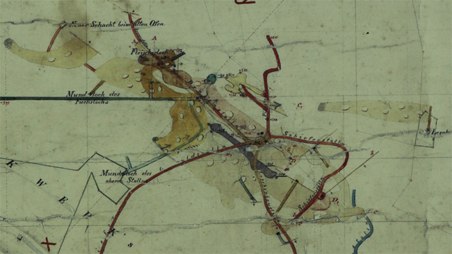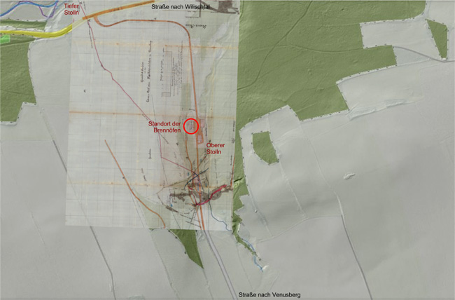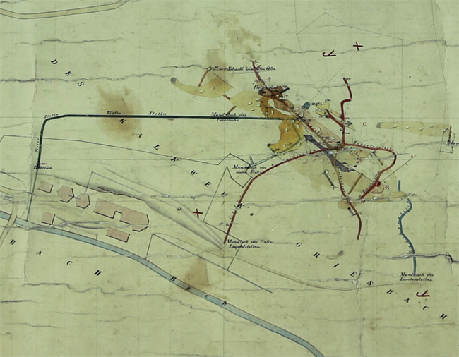 Auch hier gelingt es uns einigermaßen, den Grubenriß in die heutige Topographie einzupassen.