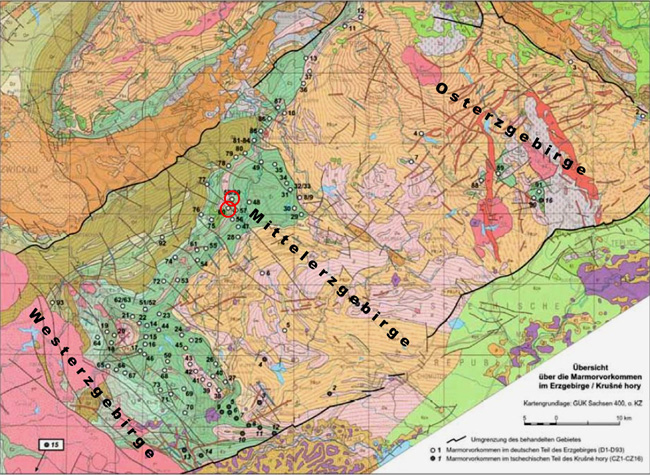 Kalksteinbrüche von Grießbach und Venusberg liegen im Bereich der nordwestlichen