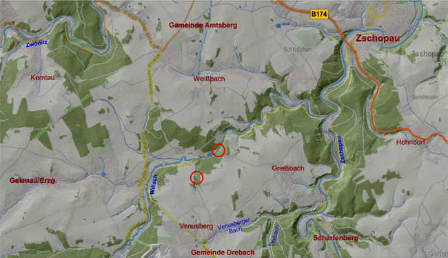 Bei einem Luftangriff in der Nacht vom 14. zum 15. Februar 1945 wurden auch 21 Gebäude in Grießbach zerstört (wikipedia.de). Das Territorium der früheren Amtshauptmannschaft Marienberg wurde dann im Zuge der Bezirksreform in der DDR im Jahr 1952 auf die Kreise Marienberg und Zschopau aufgeteilt (30046, Bestandserläuterungen). Von 1994 bis 2009 gehörte Venusberg zum Verwaltungsverband Grüner Grund. Zum 1. Januar 1999 wurde auch Grießbach ein Ortsteil der Gemeinde Venusberg. Am 1. Januar 2010 erfolgte schließlich der Zusammenschluß der Gemeinden Drebach und Venusberg.