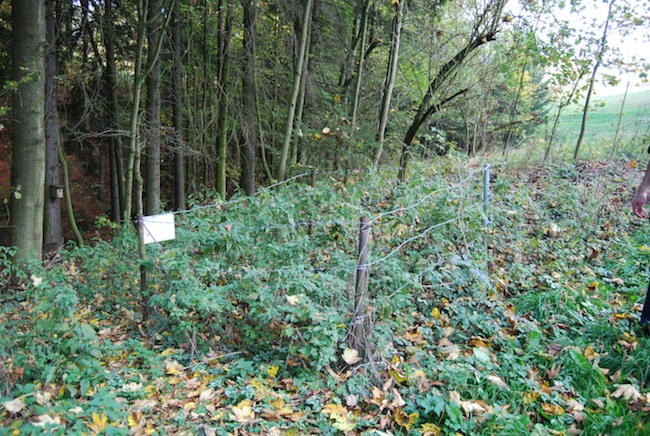 ![]() Neuzeitliche Einzäunungen unweit vom Weg.