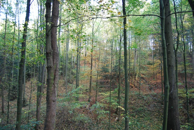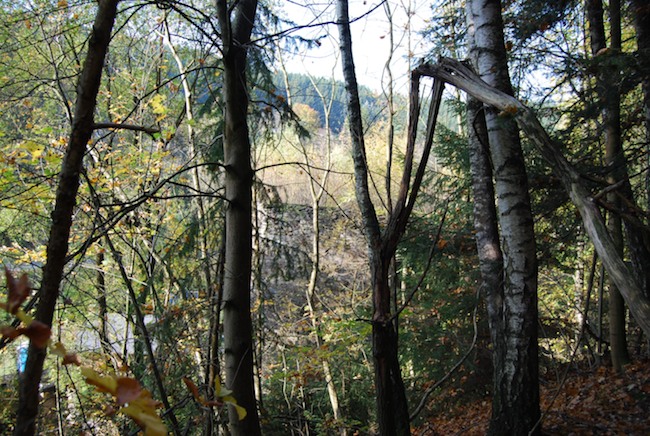 ![]() Blick in Richtung des früheren Kalkwerkes das Tal hinauf. Vor nicht allzu langer Zeit sind hier große Flächen ausgeholzt worden und ermöglichen diesen Blick.