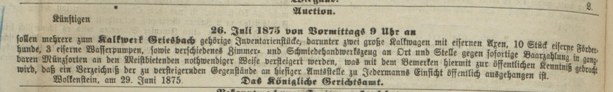 Königlichen Bergamt über den zweiten Tageszugang das Kalkwerk. Dabei