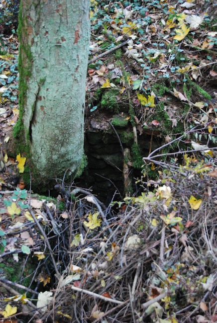 ![]() Die Bruchsteinmauerung des Schachtkopfes ist noch erhalten und an einigen Stellen sichtbar.