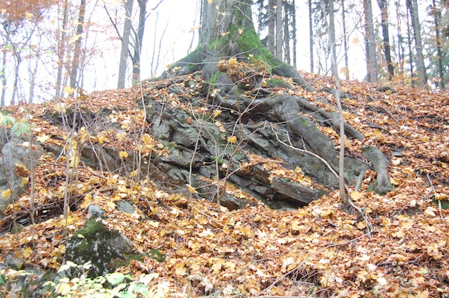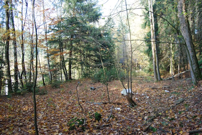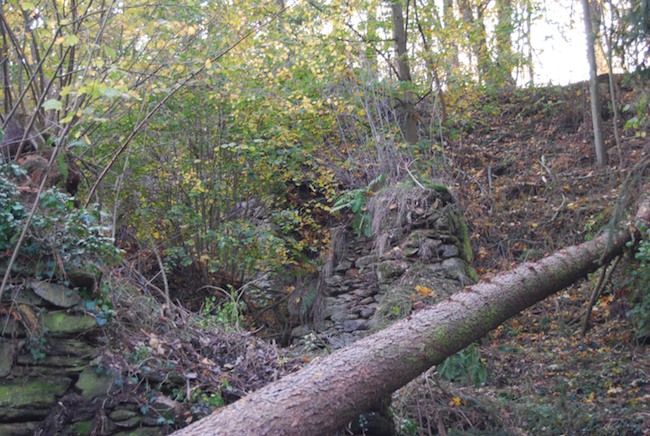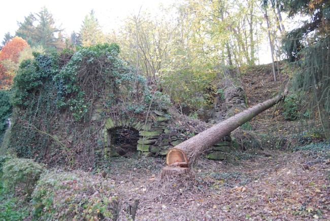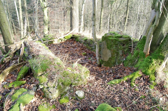 ![]() Die Natur hat sich die Reste der Grundmauern wieder zurückgeholt. Die Bäume wachsen direkt aus dem Mauerwerk und heben es regelrecht aus. Nur eine Frage der Zeit, bis hier alles verschwunden ist.