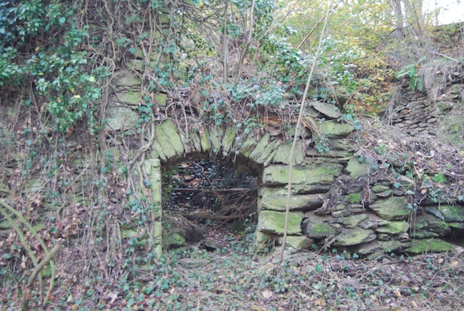 ![]() Das Gelände im Tal unterhalb des Kalkwerkes ist stark verwachsen und die Lage des oberen Stollns ist kaum mehr auffindbar.