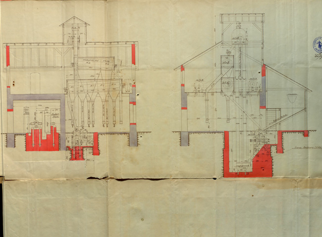 ![]() In der Mitte die Trümmer des zusammen gestürzten Brennkessels und der Zwischendecken.