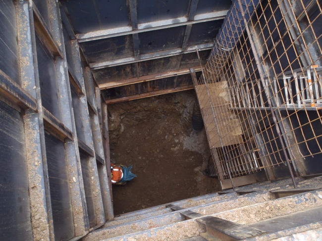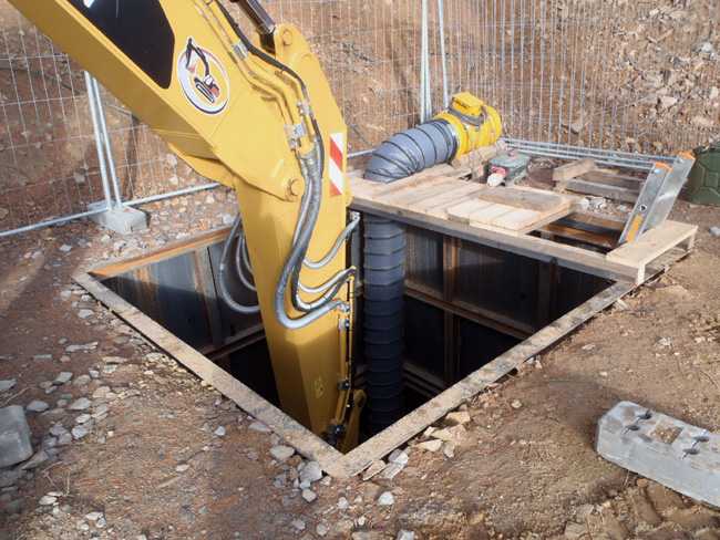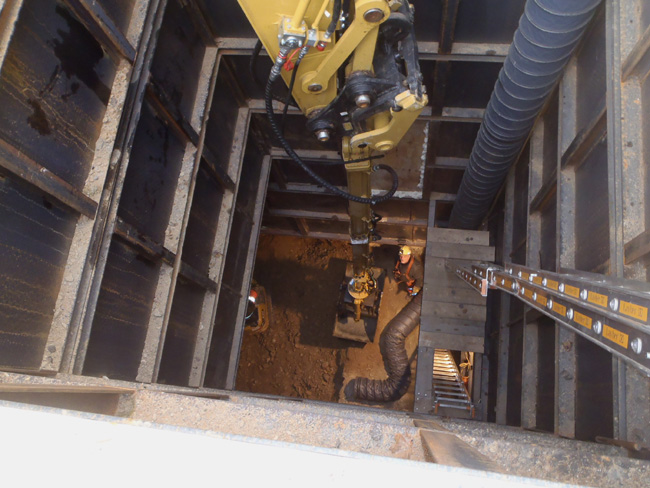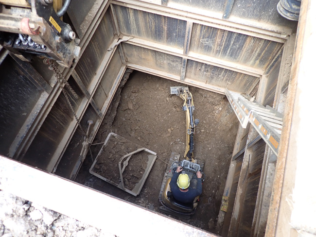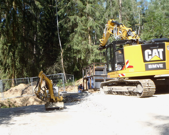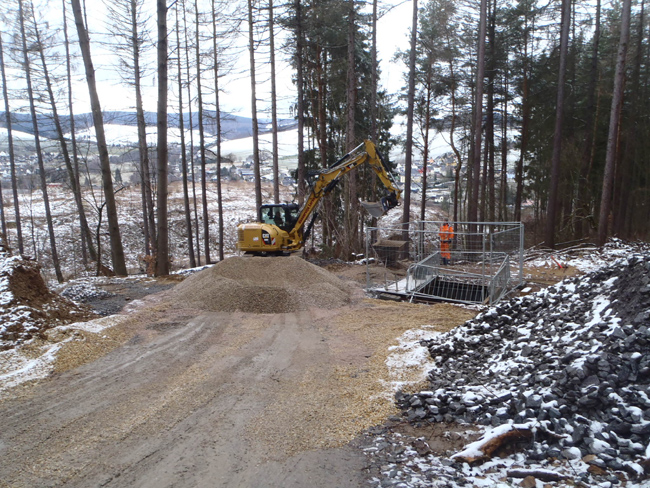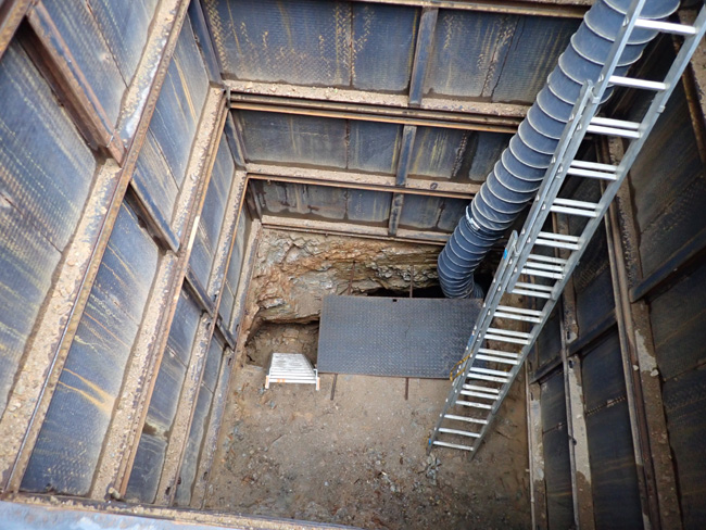 Aus diesem Grund haben auch die Bergleute der SCHACHTBAU NORDHAUSEN GmbH, die diese Arbeiten ausführten, eine andere Technik, als ihre Kollegen vom anderen Unternehmen zuvor, gewählt: Statt dem vielfach üblichen Dreibock mit Haspel und Kübelförderung kam diesmal hier mobile Baggertechnik zum Einsatz.