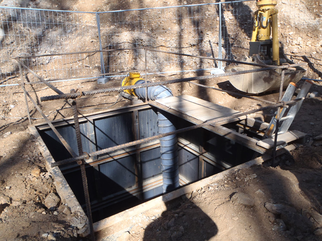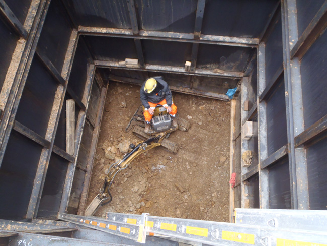 ![]() Um die offenen Räume im Untergrund wirklich kontrolliert zu verfüllen, werden Trenndämme eingebaut.