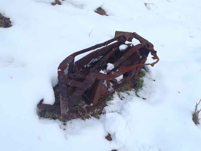 Oh - die war übrig. Ein Stück Sprengschnur und ein paar verfaulte Pfosten sind alles, was unsere Vorgänger hier hinterlassen haben. |