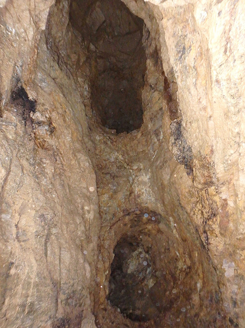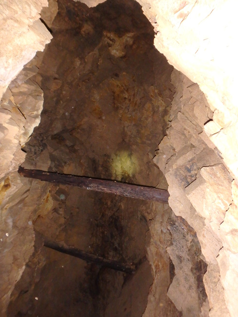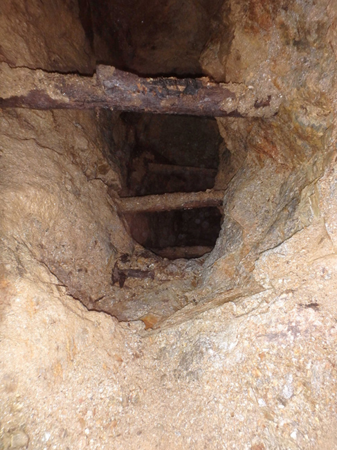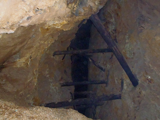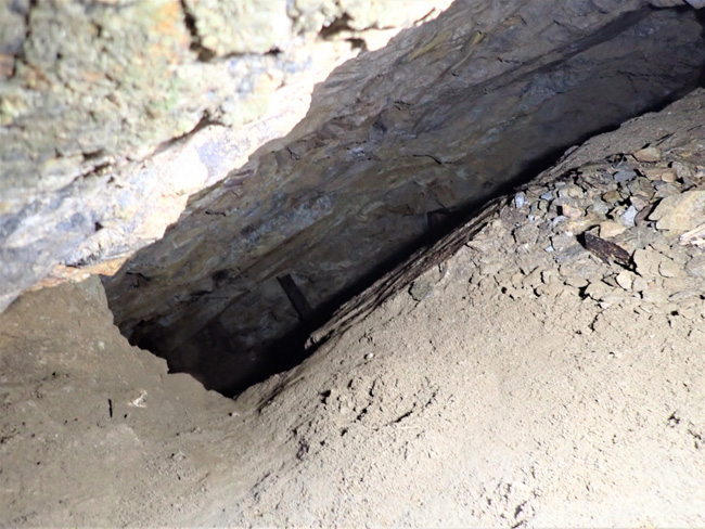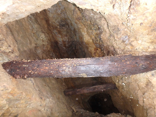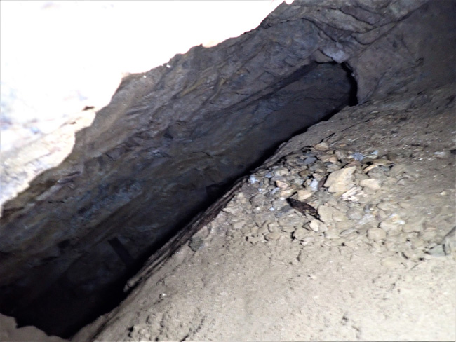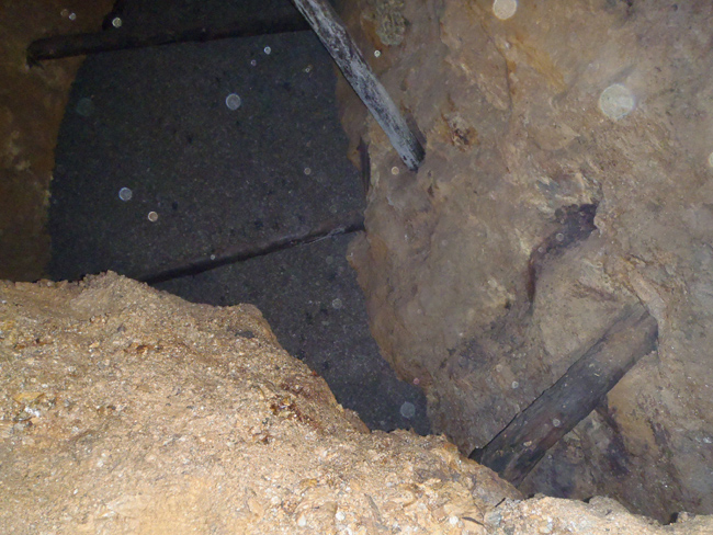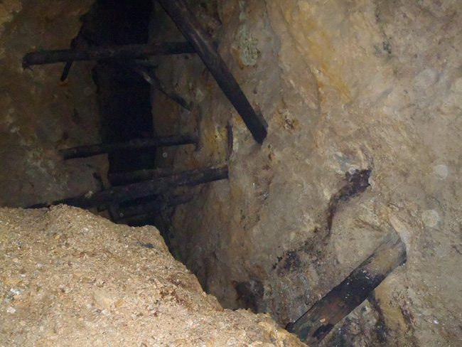 ![]() Noch ein Blick nach unten - und auch dieses Überhauen stand wieder völlig leer... Der eine schon fast weggefaulte Stempel wird die Stöße jedenfalls nicht mehr lange halten. Foto: SBN.