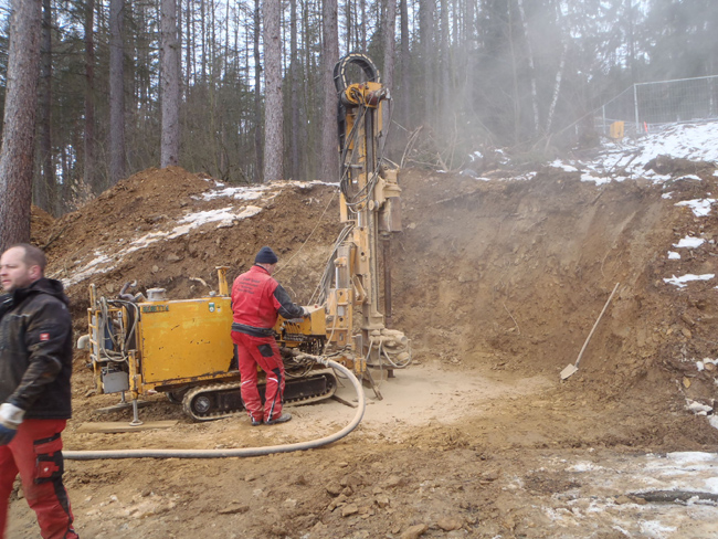 So ging es weiter: Mit dem Bohrgerät werden die offenen Hohlräume von übertage aus nun angebohrt...