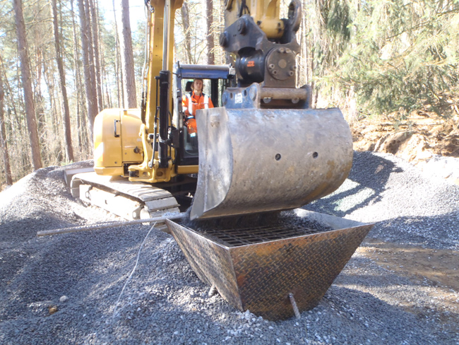 Und durch die Bohrungen wurde zunächst Schotter eingefüllt.