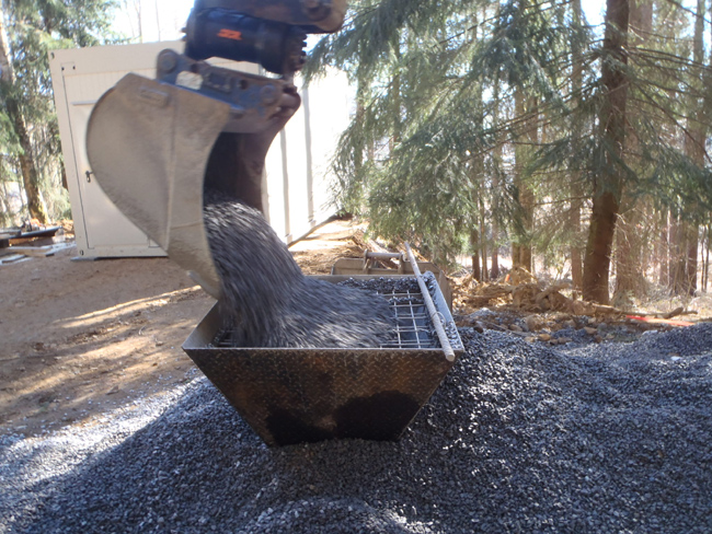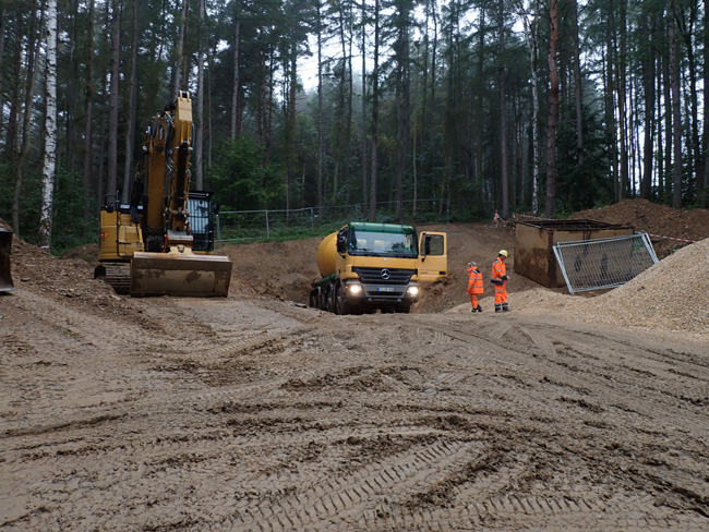 Nun kann der Bagger wieder zur Seite gestellt werden und die Fahrmischer rücken an...