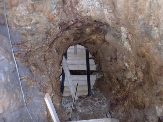 Okay - das haben wir jetzt fast schon erwartet: Auch hier stehen die Etagenstrecken noch offen. Diese oberste liegt wieder kaum 5 m unter der Oberfläche...