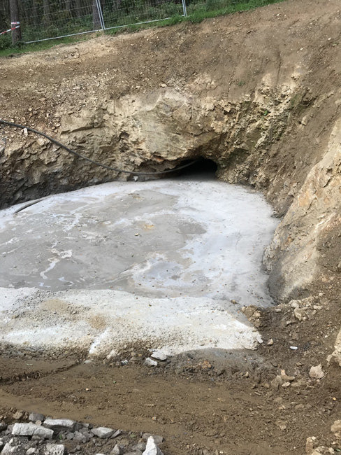 In der Zwischenzeit war die Bohrfirma wieder da und über mehrere Bohrlöcher und die offenen Teufen wurde anschließend alles endgültig verfüllt.