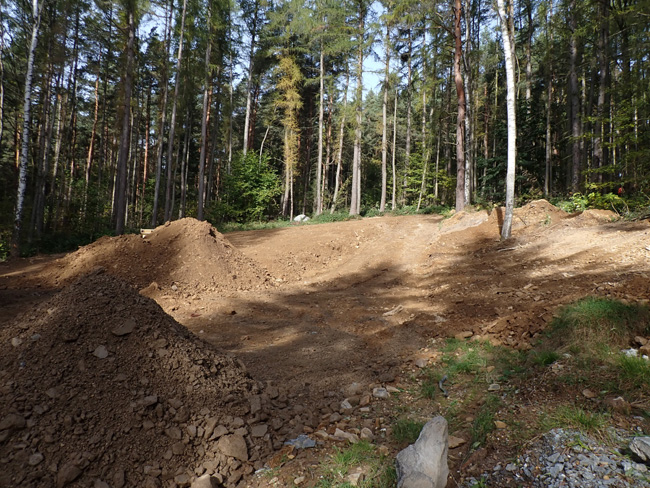 Während hinten noch die Oberfläche begradigt wird, begrünt sich die Fläche vorn schon wieder selbst...