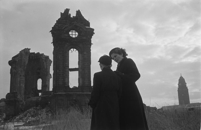 Laubegast zu fahren, bald darauf erhielt ich von Linda eine Karte, daß sie gut angekommen und mich in Freiberg bald besuchen werde, aber ohne Christian. Ich aber wollte doch auch das Kind sehen, so bin ich nach Laubegast und habe die Pfingsttage dort schön verlebt. Das muntere Kind hat mir viel Freude gemacht. Da am 30.6. Frau Mangler ihren 75. Geburtstag feierte, bin ich noch mal nach Dresden, um ihr meine Glückwünsche darzubringen. Ich war früh zeitig in Dresden, und um nicht zu zeitig in Laubegast zu sein, bin ich durch die Prager- und Schloßstraße bis an die Elbe gegangen und mit Schiff nach Laubegast gefahren. Die nicht so schönen Straßen sind Häuser leer, nur einige Fassaden stehen noch. Es sind große Grünstücke angelegt, man kennt sich nicht mehr aus. Schloß, Hofkirche, Oper sind ausgebrannt, die Front des Schlosses steht noch, das Fenster unserer Wachstube ist erhalten, das Ganze ein trauriges Bild. Bald darauf besuchte mich Brigitte Kohl, mein Patenkind, die als Saatgutassistentin in Gattersleben angestellt ist.